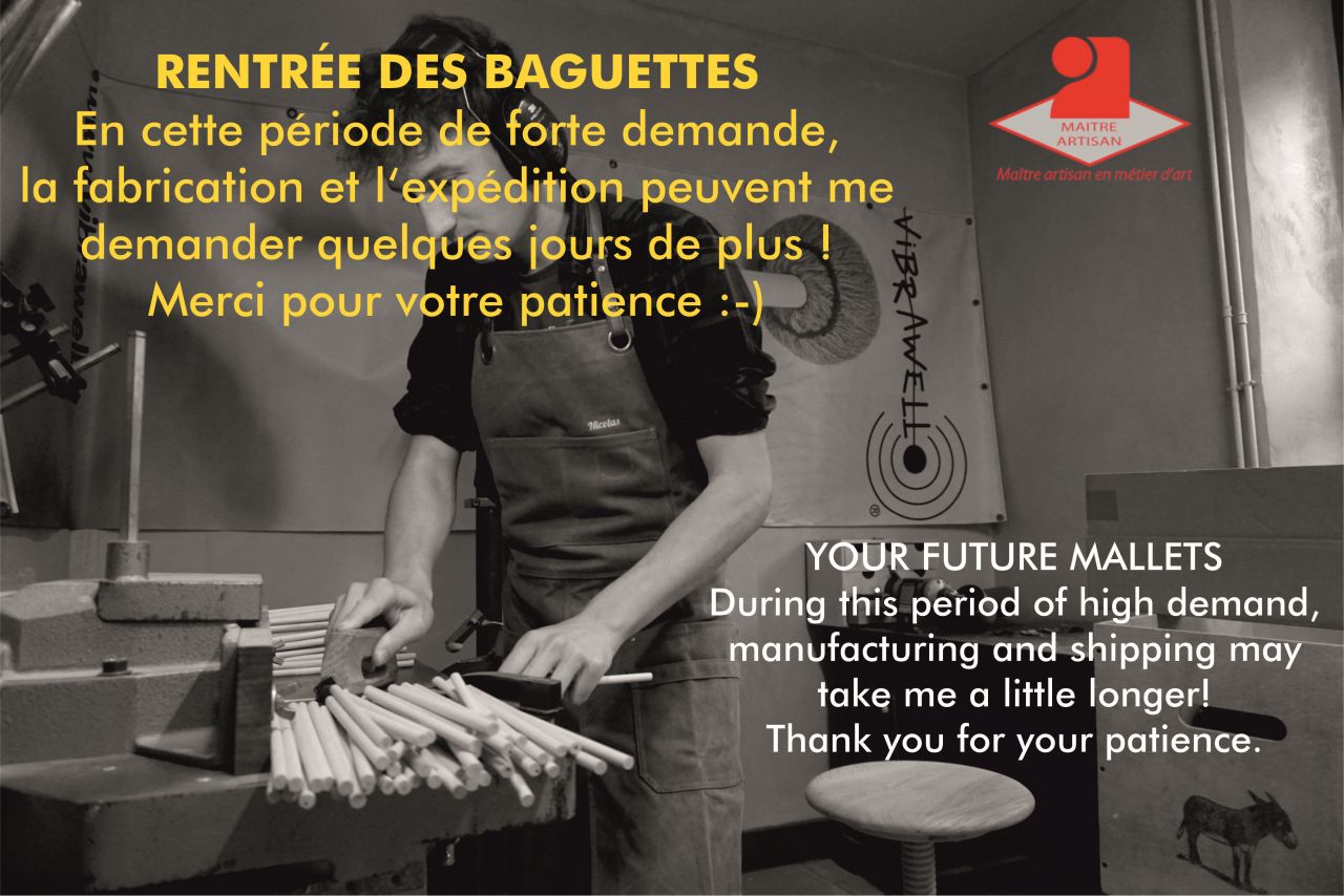 Chaque baguette est fabriquée entièrement à la main dans l’atelier Vibrawell, situé dans le Beaufortain (Savoie).